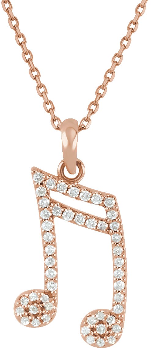 14K Rose 1/5 CTW Natural Diamond Double Sixteenth Note 16″ Necklace – 85843