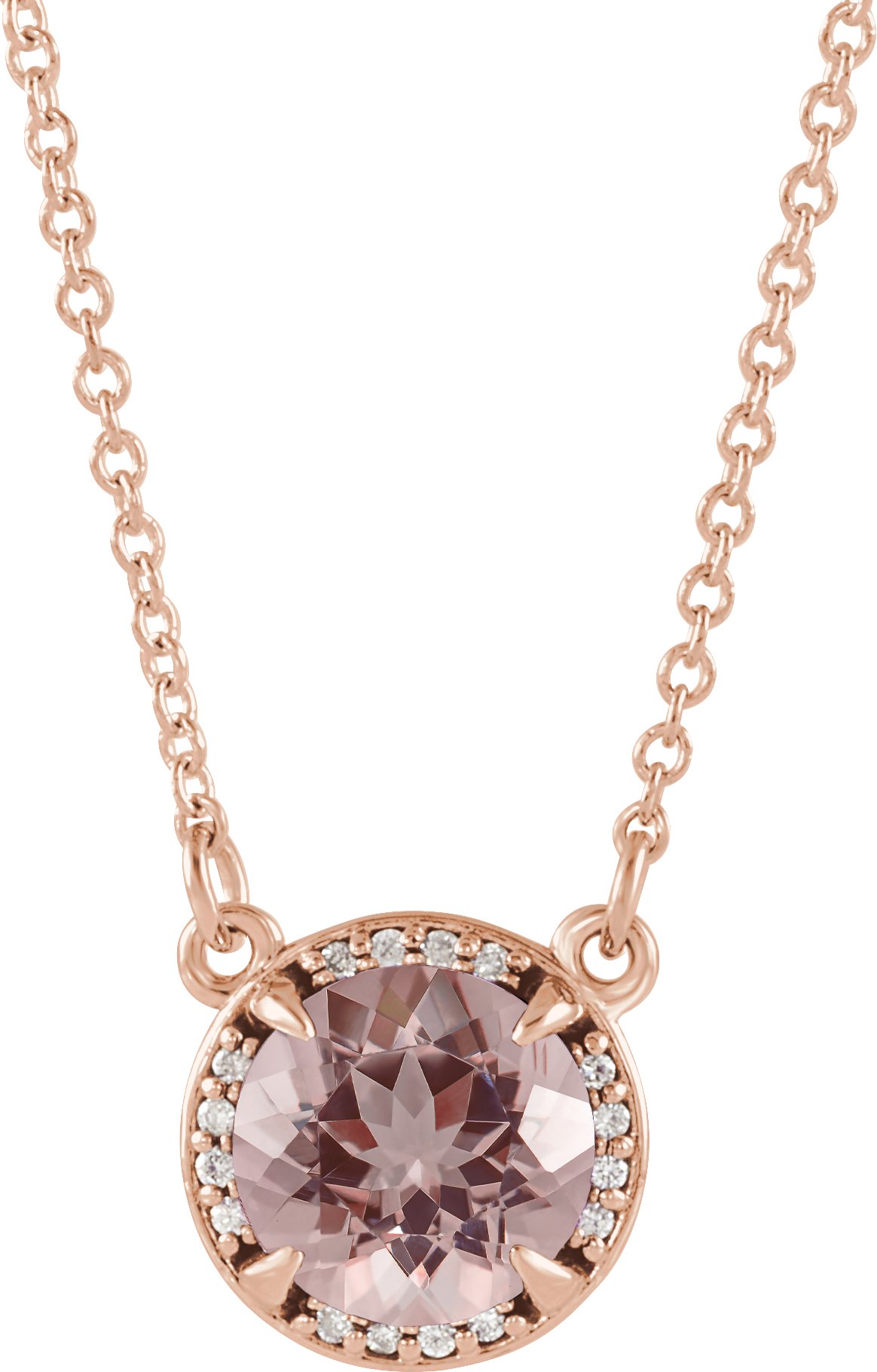 14K Rose 6 mm Natural Morganite & .04 CTW Natural Diamond 16″ Necklace – 85905