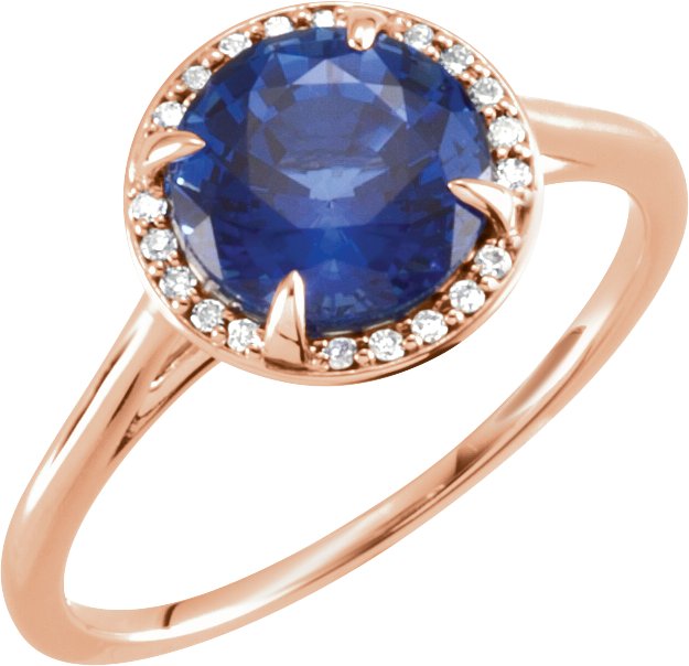 14K Rose Lab-Grown Blue Sapphire & .05 CTW Natural Diamond Ring – 71632