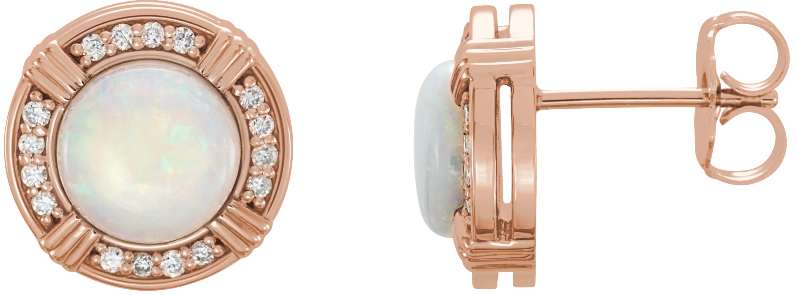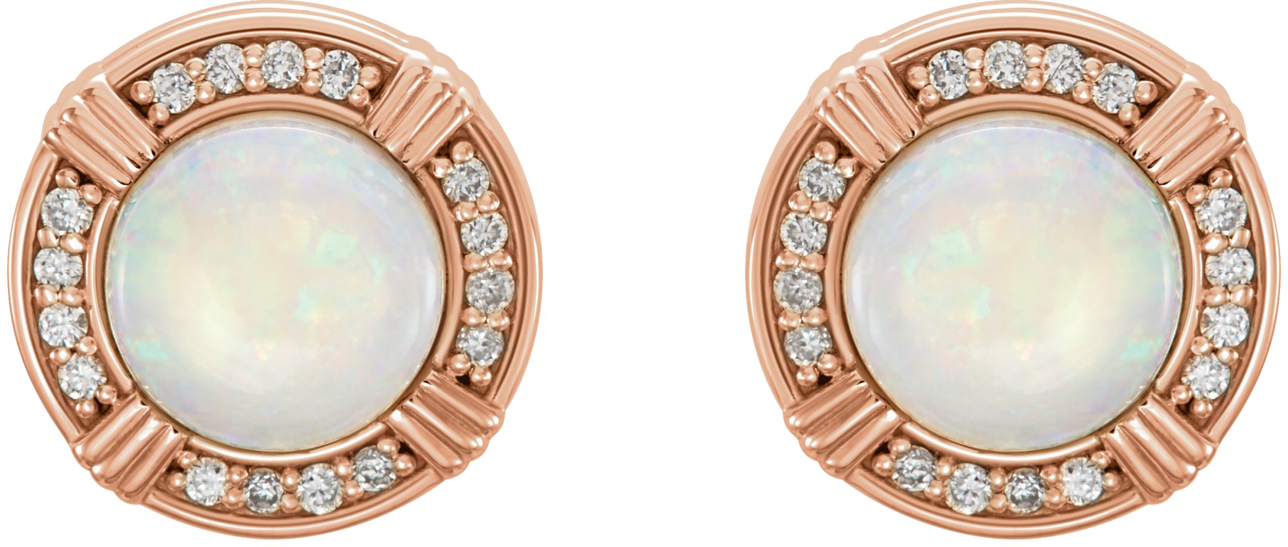 14K Rose Natural White Opal & 1/8 CTW Natural Diamond Earrings – 86284