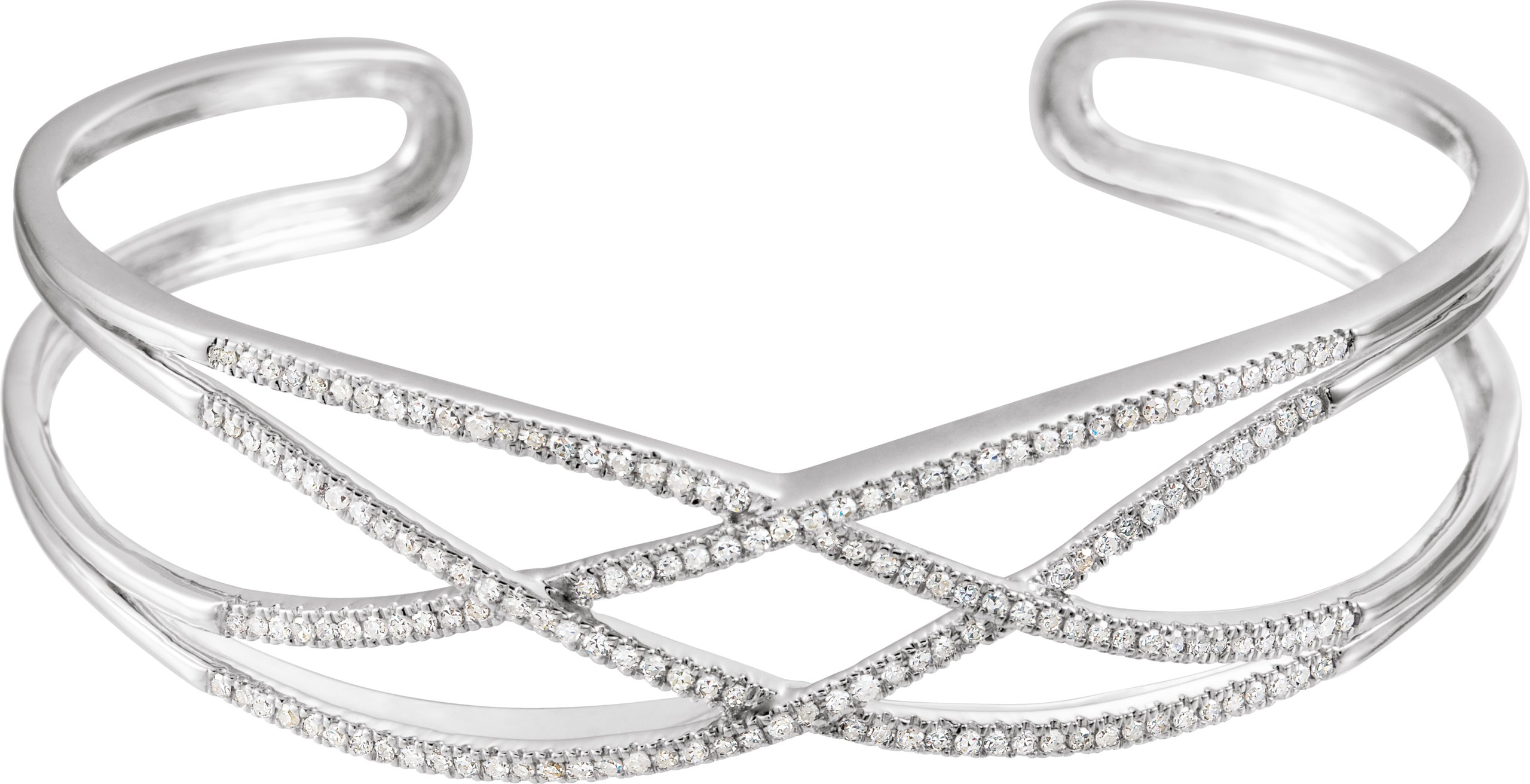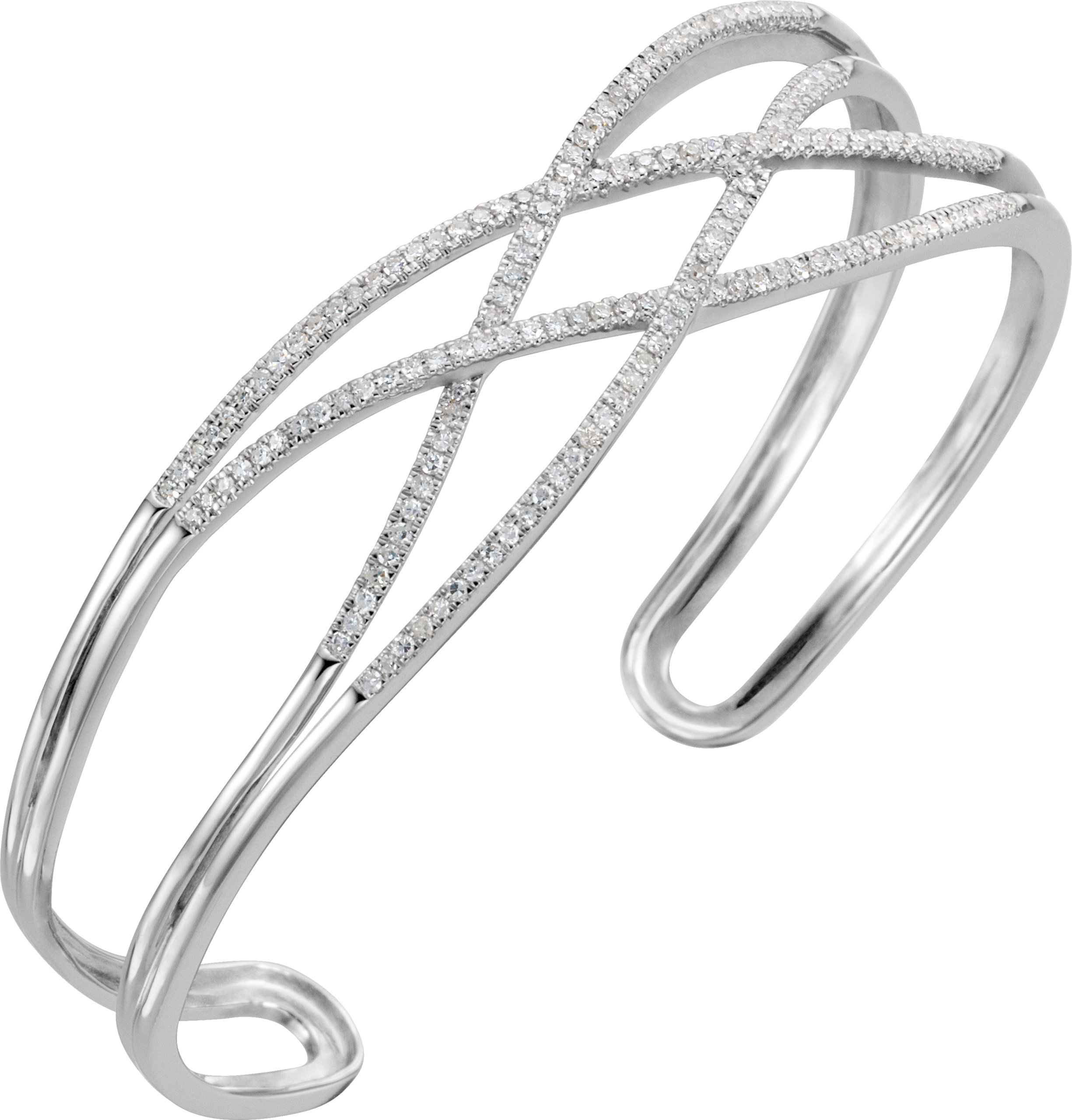 14K White 3/4 CTW Natural Diamond Criss-Cross Cuff 7″ Bracelet – 652349
