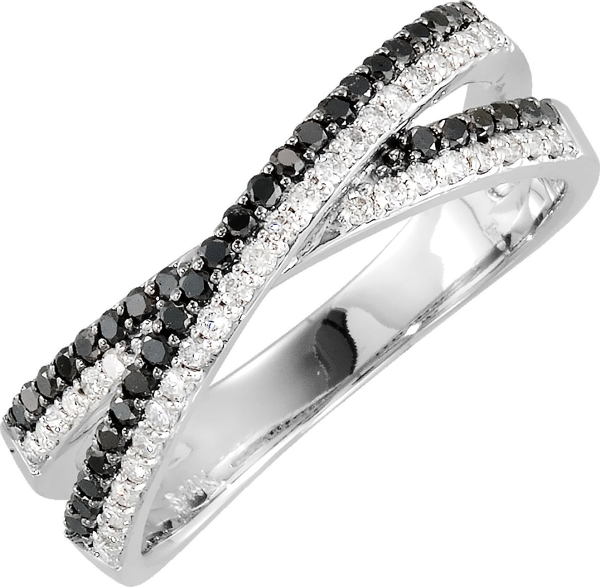 14K White 3/8 CTW Natural Black & White Diamond Criss-Cross Ring – 68233