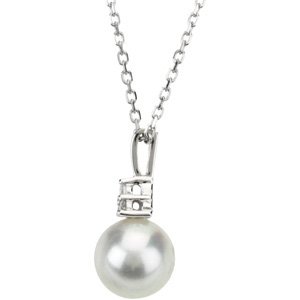 14K White Cultured White Freshwater Pearl & .06 CTW Natural Diamond 18″ Necklace – 67461
