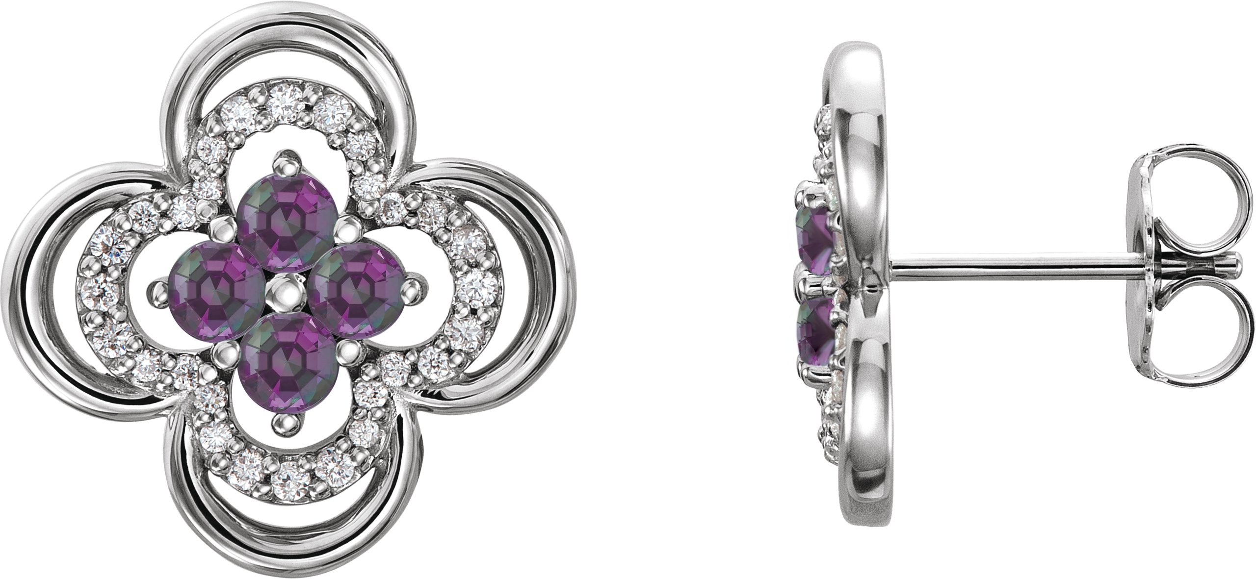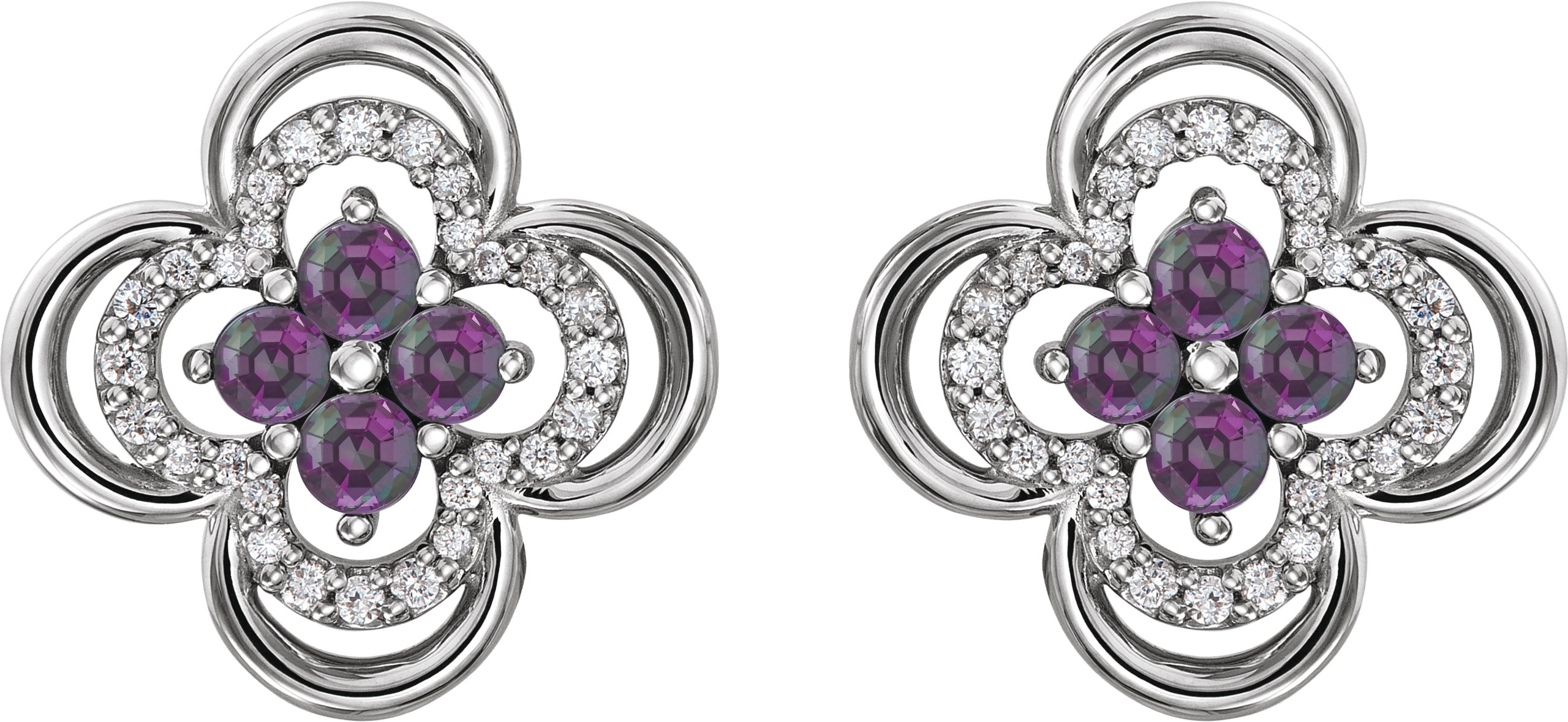 14K White Natural Alexandrite & 1/5 CTW Natural Diamond Clover Earrings – 86370