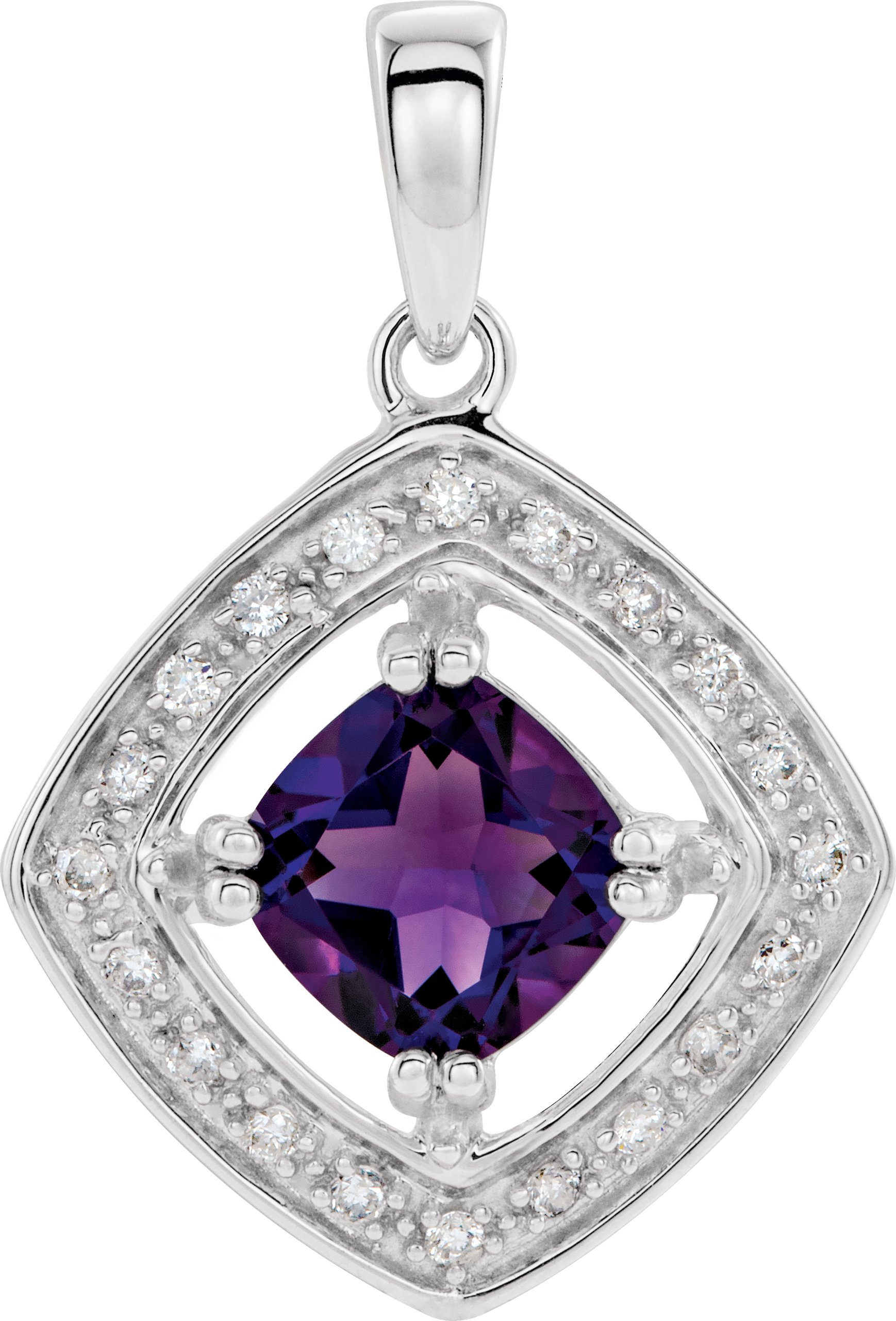 14K White Natural Amethyst & 1/10 CTW Natural Diamond Pendant – 64560