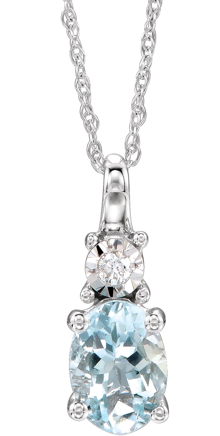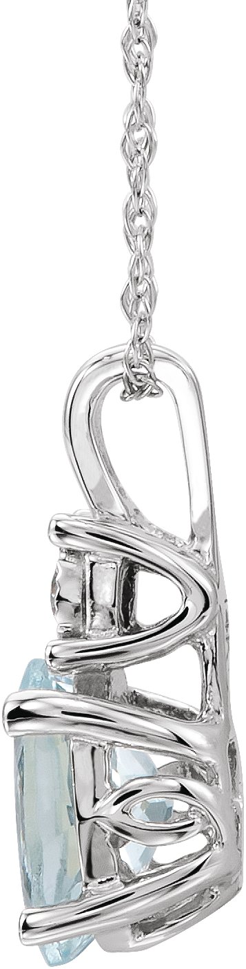 14K White Natural Aquamarine & .02 CT Natural Diamond 18″ Necklace – 651534