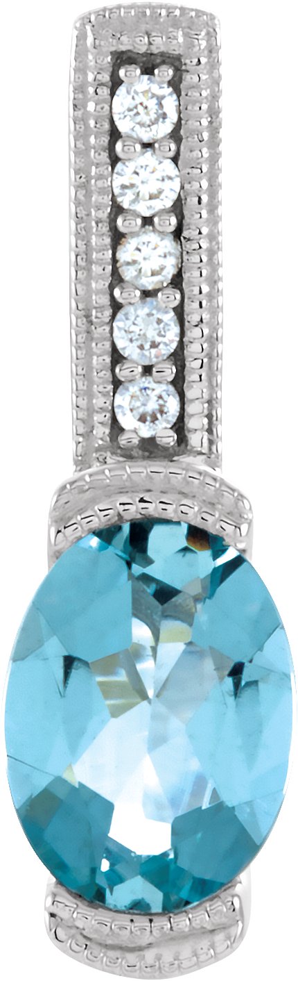 14K White Natural Aquamarine & .05 CTW Natural Diamond Pendant – 66327