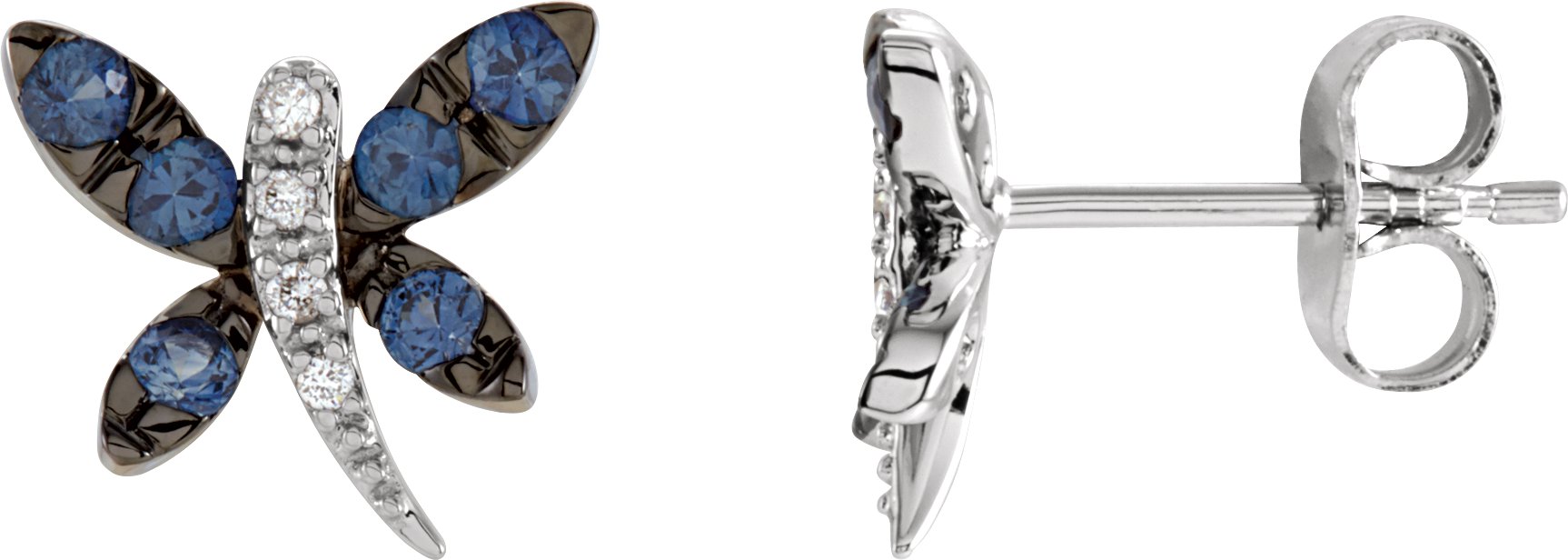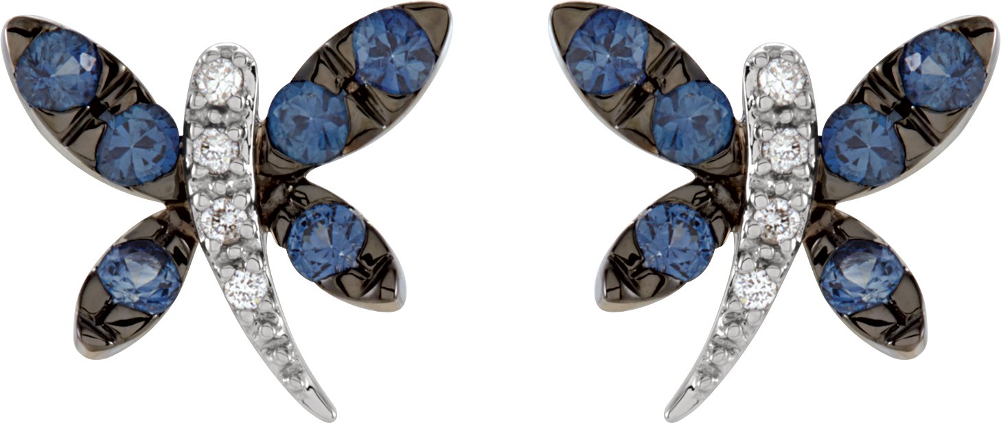 14K White Natural Blue Sapphire & .04 CTW Natural Diamond Dragonfly Earrings – 65687