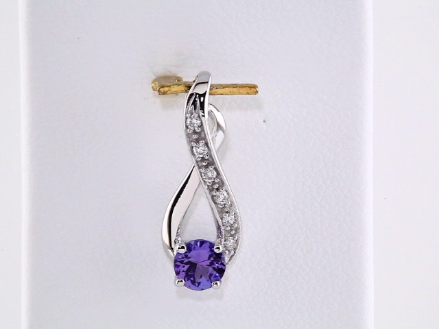 14K White Natural Tanzanite & .04 CTW Diamond Pendant – 69662