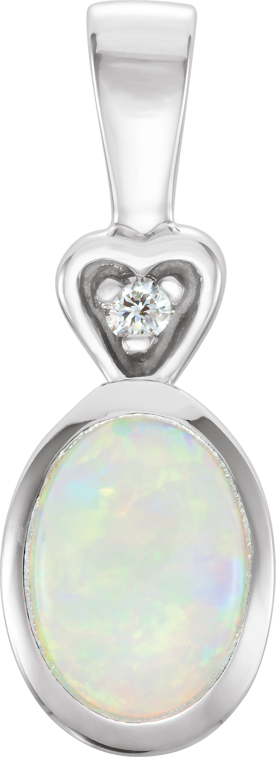 14K White Natural White Opal & .02 CT Natural Diamond Bezel-Set Pendant – 65187