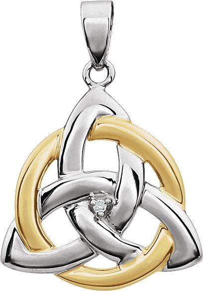 14K White/Yellow .004 CT Natural Diamond Celtic Trinity Pendant – 85979