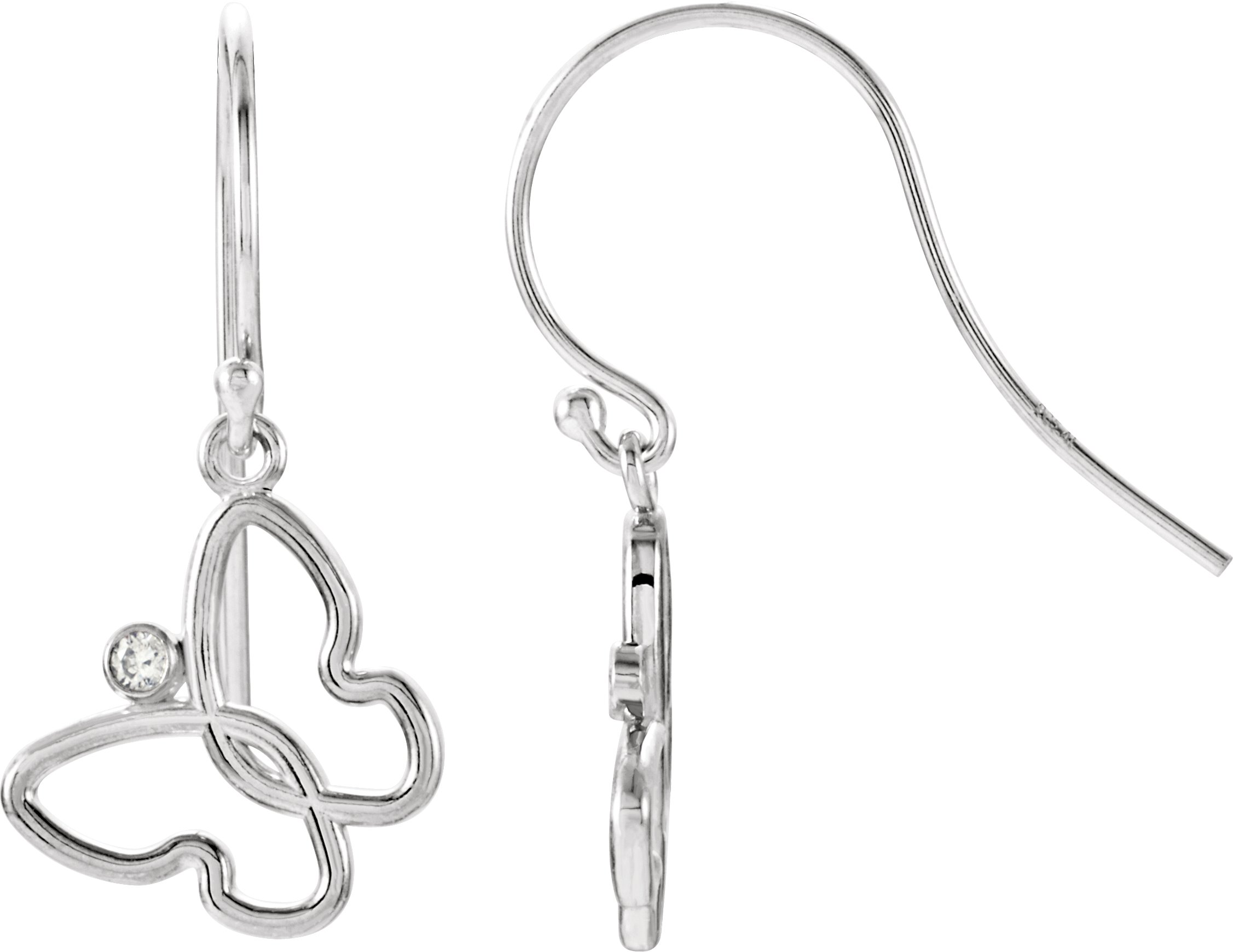 .04 Ctw Natural Diamond Butterfly Dangle Earrings