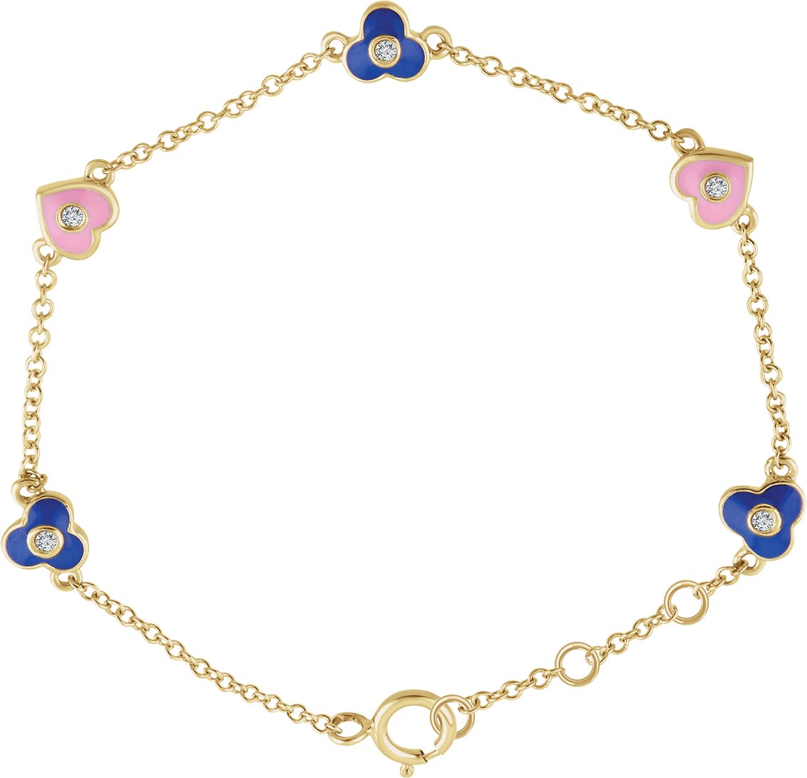 14K Yellow .04 CTW Natural Diamond Flowers & Hearts 5-7″ Bracelet – 652687