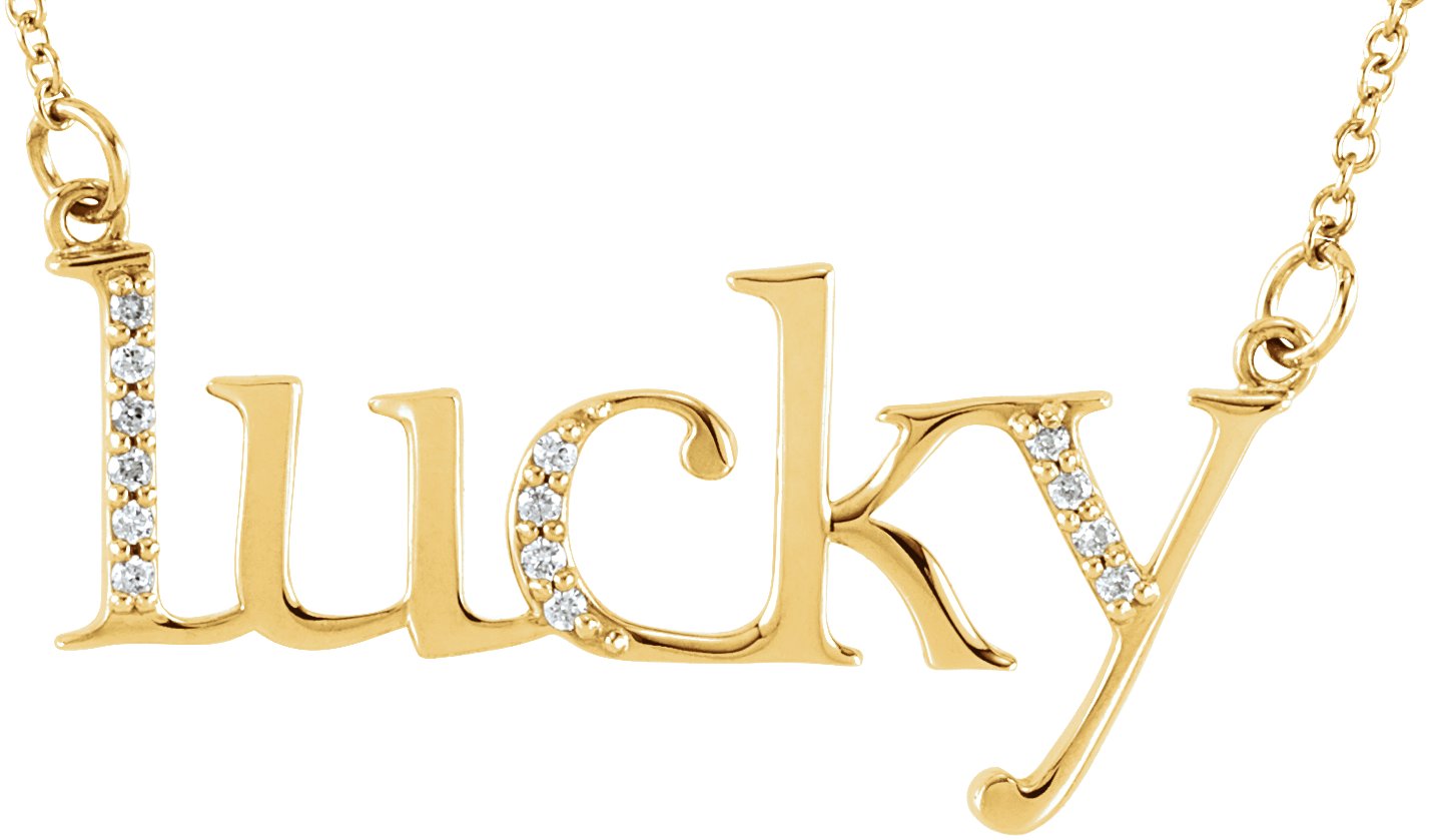 14K Yellow .06 CTW Natural Diamond “Lucky” Phrase 16 1/2″ Necklace – 85829
