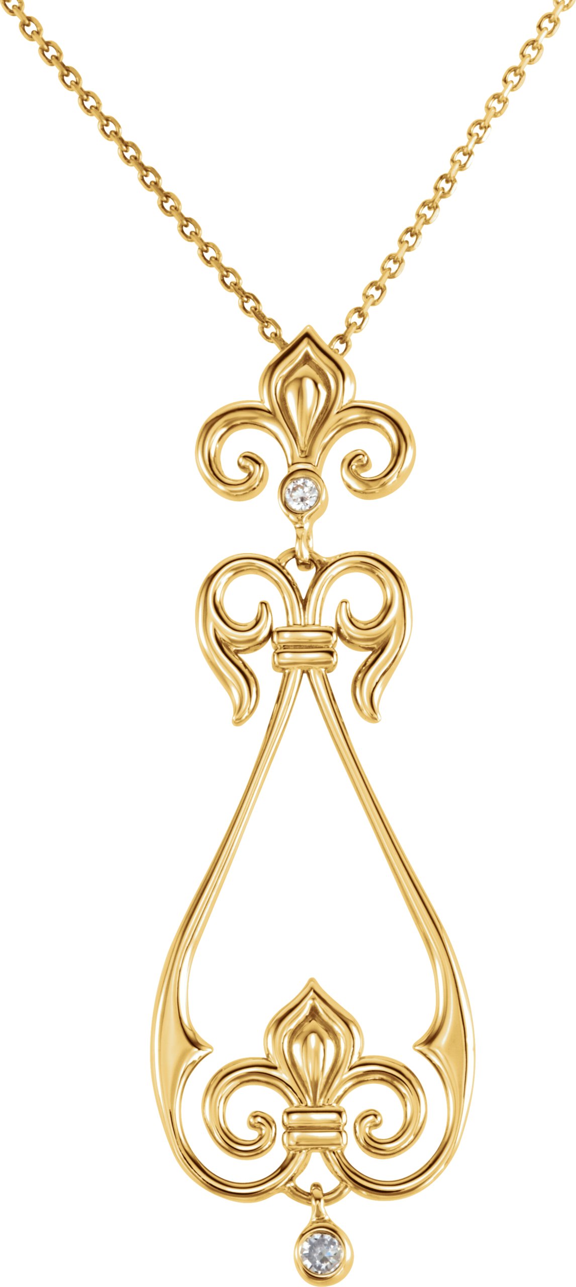 14K Yellow .08 CTW Natural Diamond Fleur-de-Lis 18″ Necklace – 85631