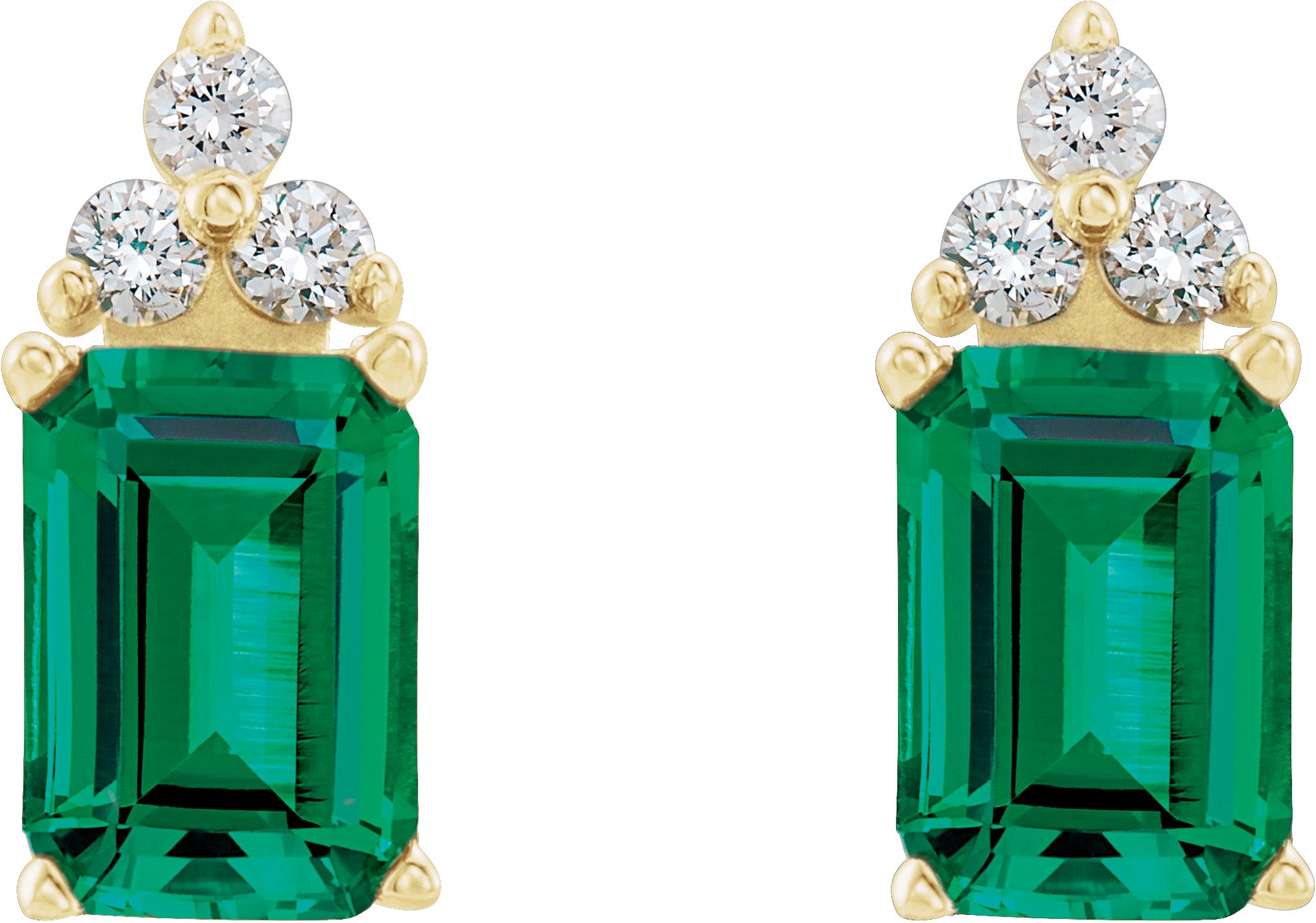 14K Yellow Lab-Grown Emerald & 1/8 CTW Natural Diamond Earrings – 67670