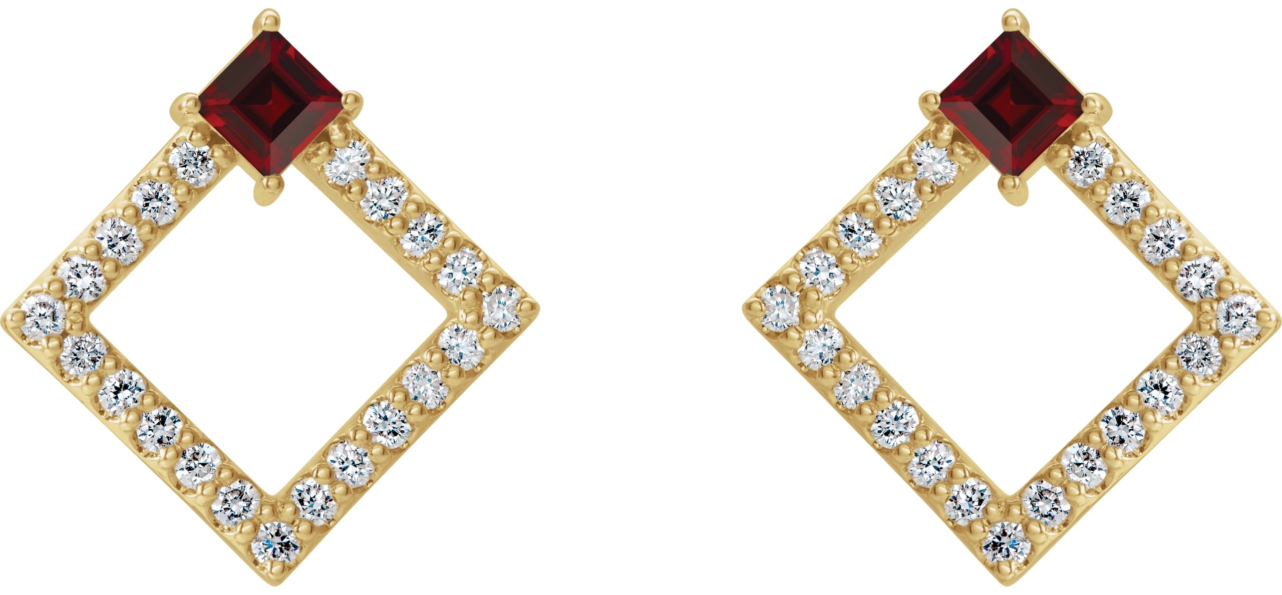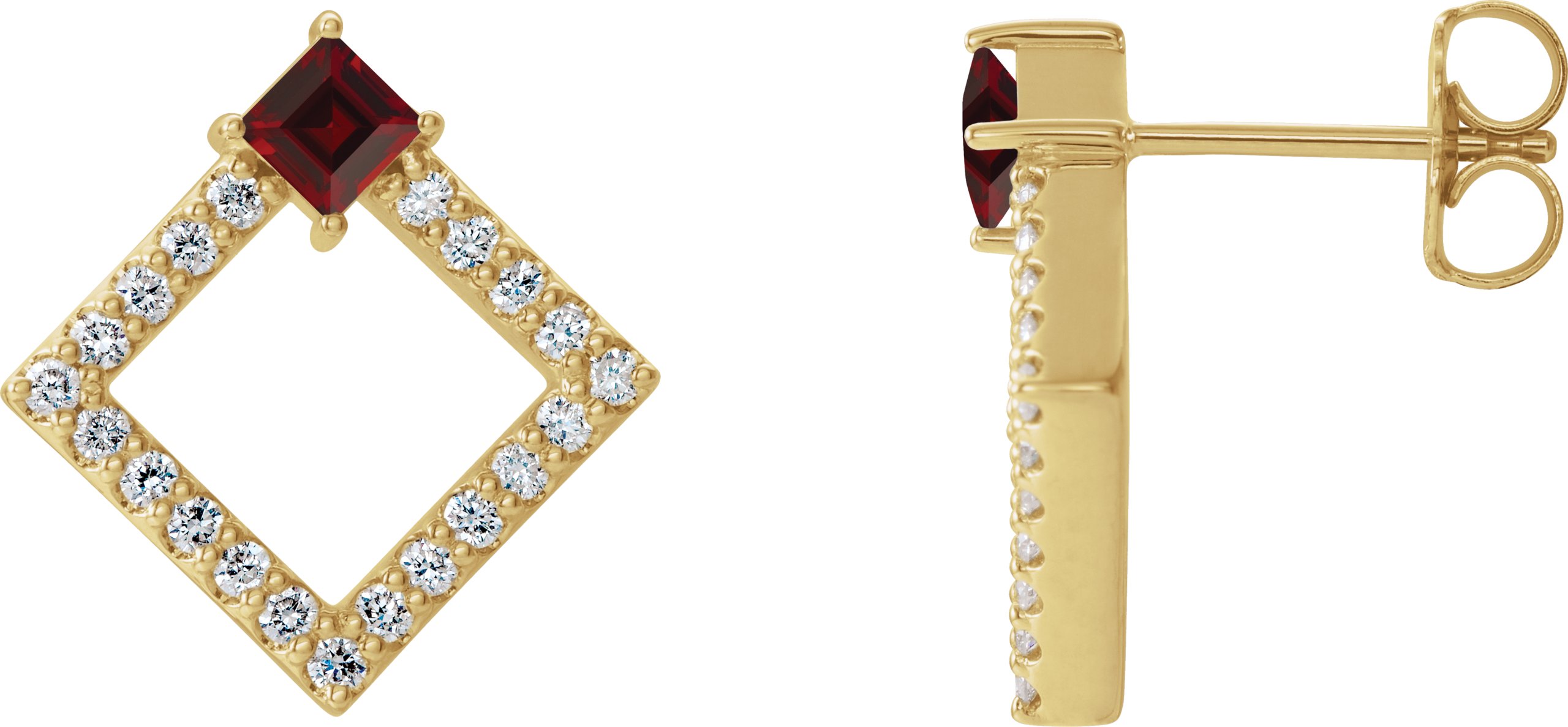 14K Yellow Natural Mozambique Garnet & 1/3 CTW Natural Diamond Earrings – 86889