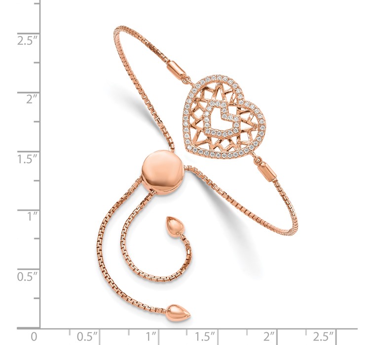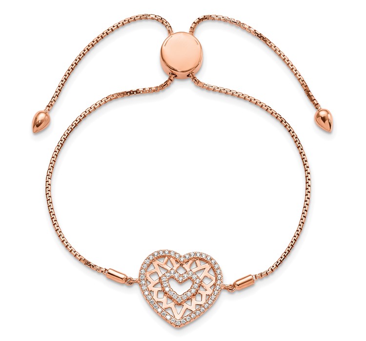 Brilliant Embers Sterling Silver Rose-tone Flash Rose Gold-plated 60 Stone Filigree CZ Heart Adjustable Bracelet