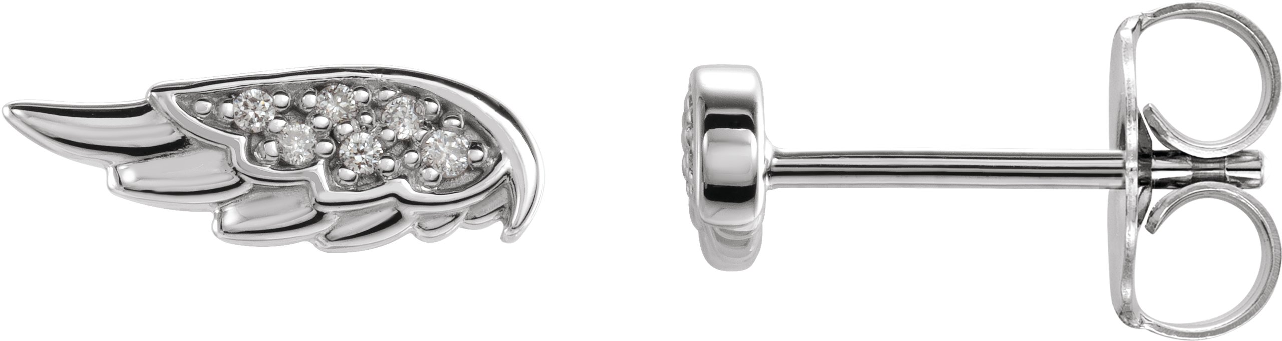 .03 Ctw Natural Diamond Angel Wing Stud Earrings With Backs
