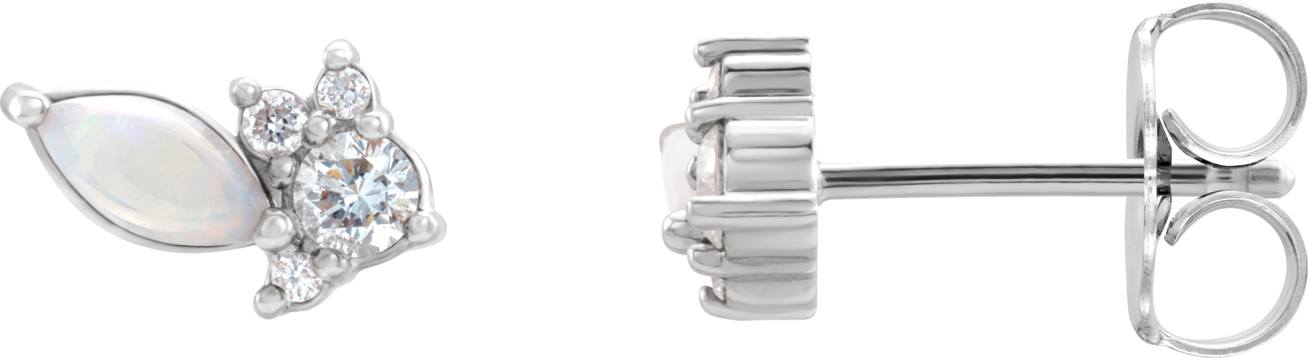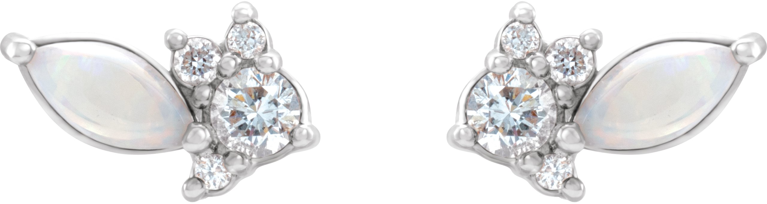 Platinum Australian Natural White Opal & 1/6 CTW Natural Diamond Cluster Earrings – 87123