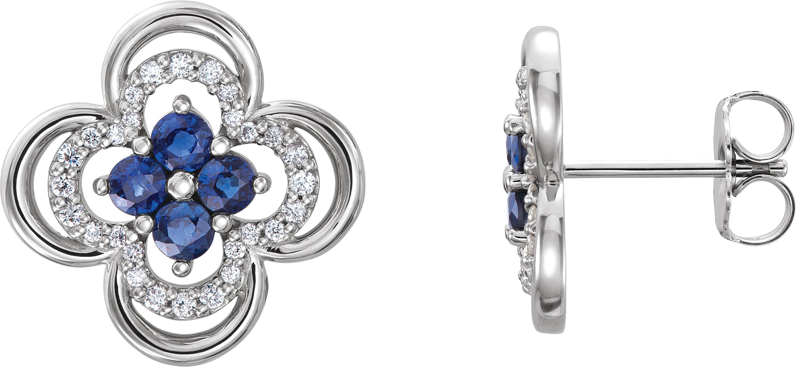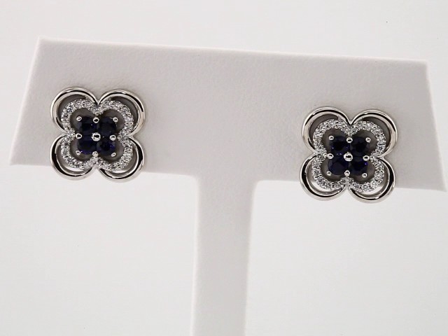 Natural Blue Sapphire And 1/5Ctw Natural Diamond Clover Earrings With Backs