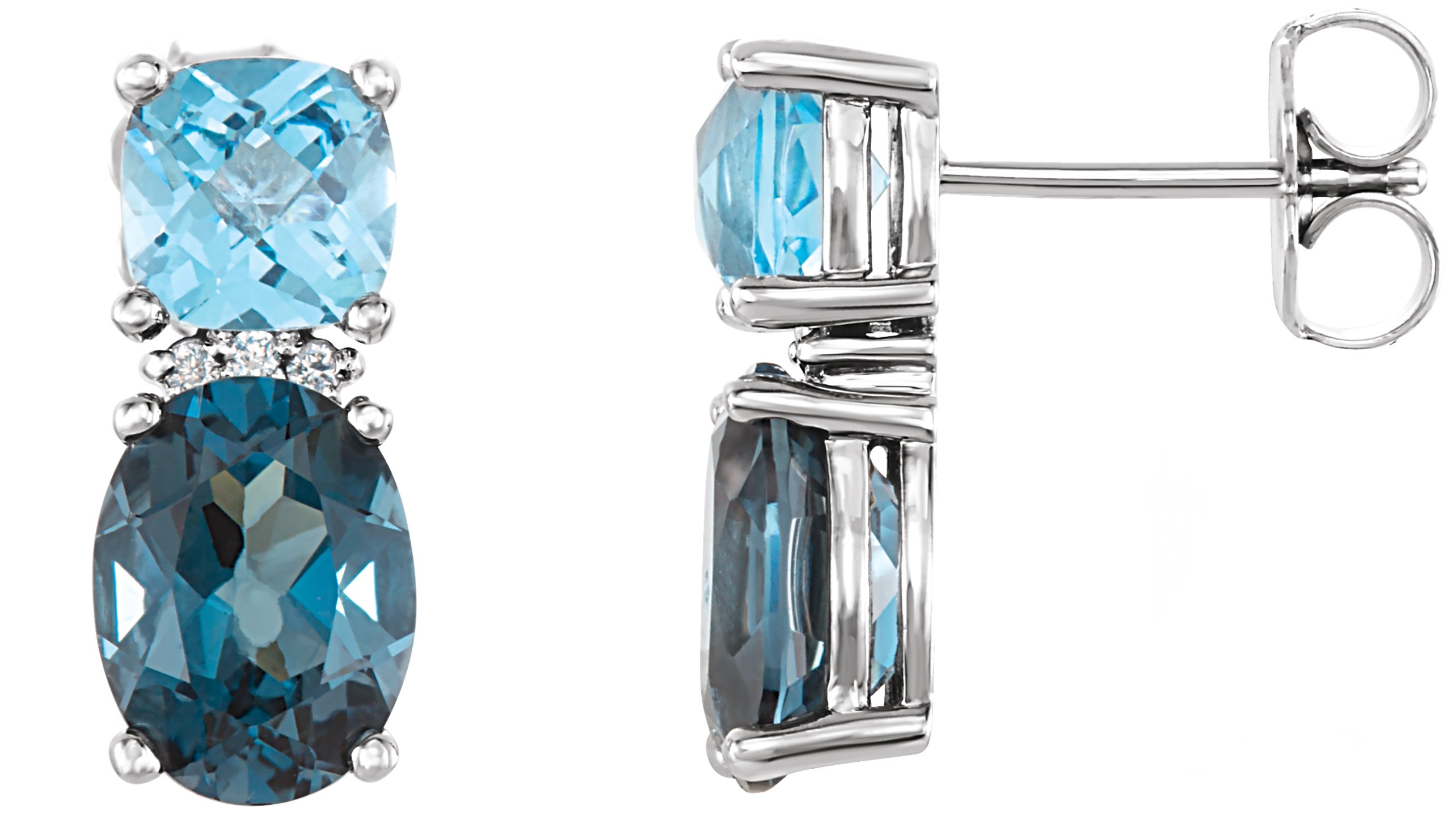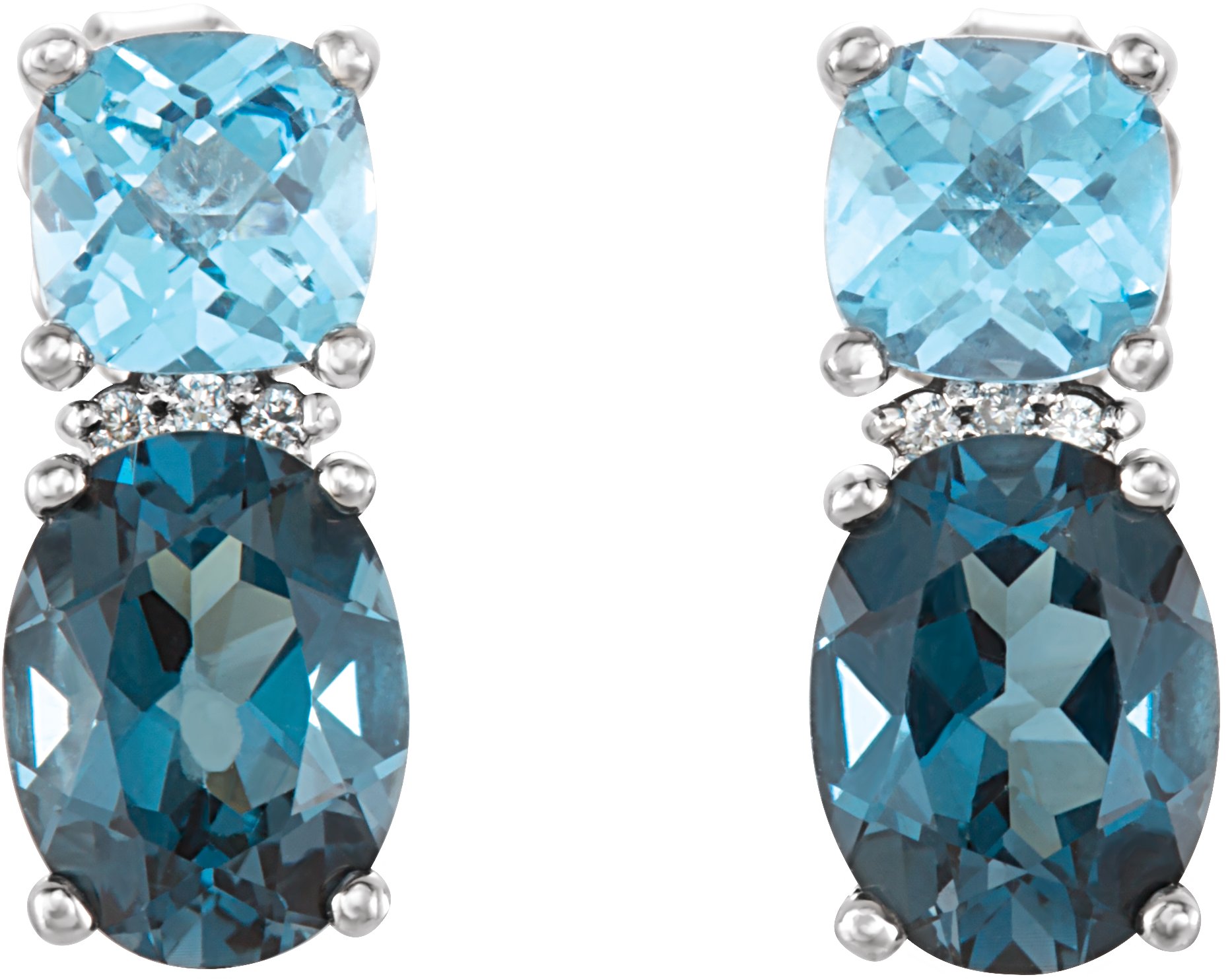 Natural London Blue Topaz Natural Swiss Blue Topaz And .01 Ctw Natural Diamond Earrings