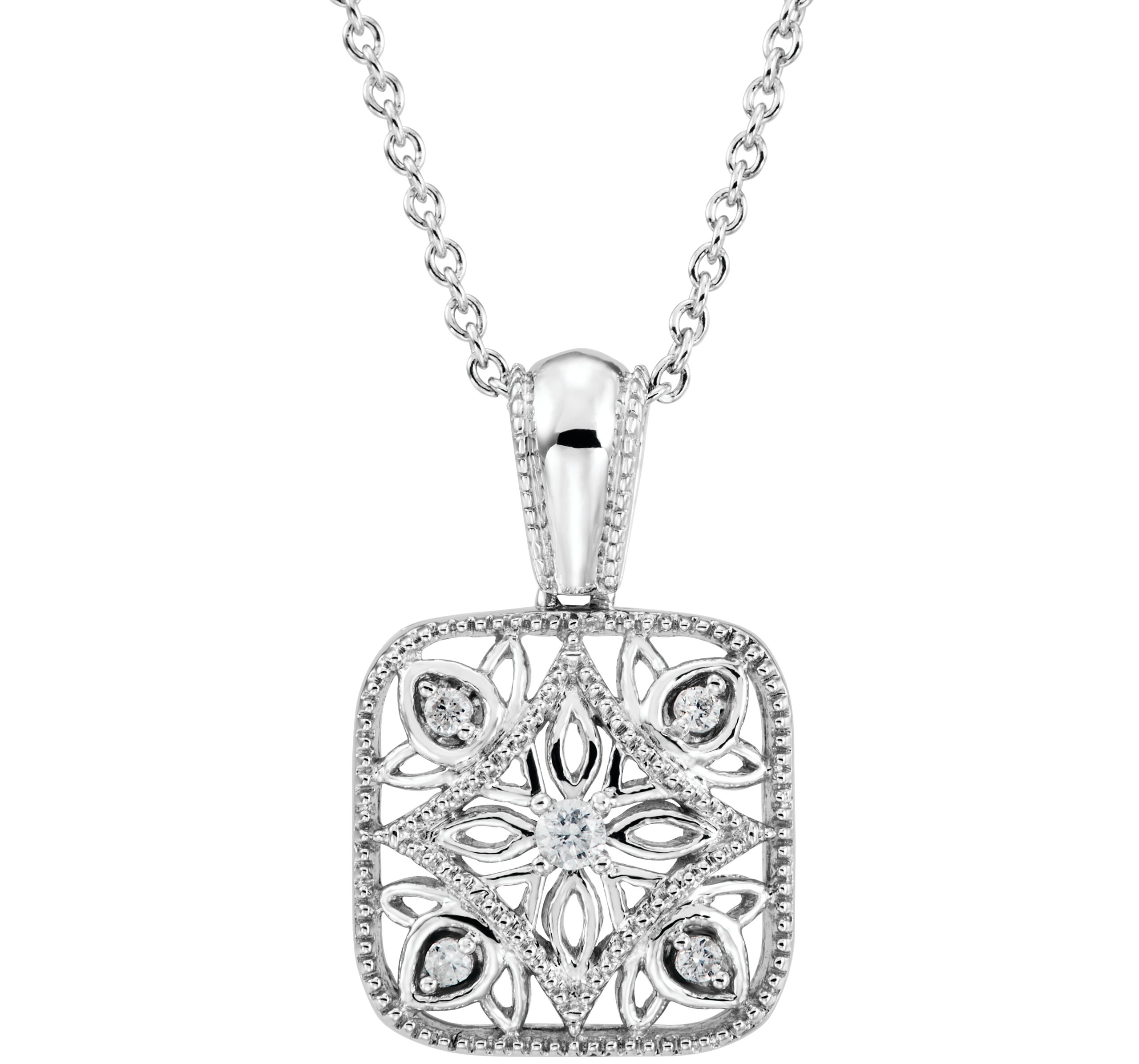 Sterling Silver .05 CTW Natural Diamond Filigree 18″ Necklace – 67984