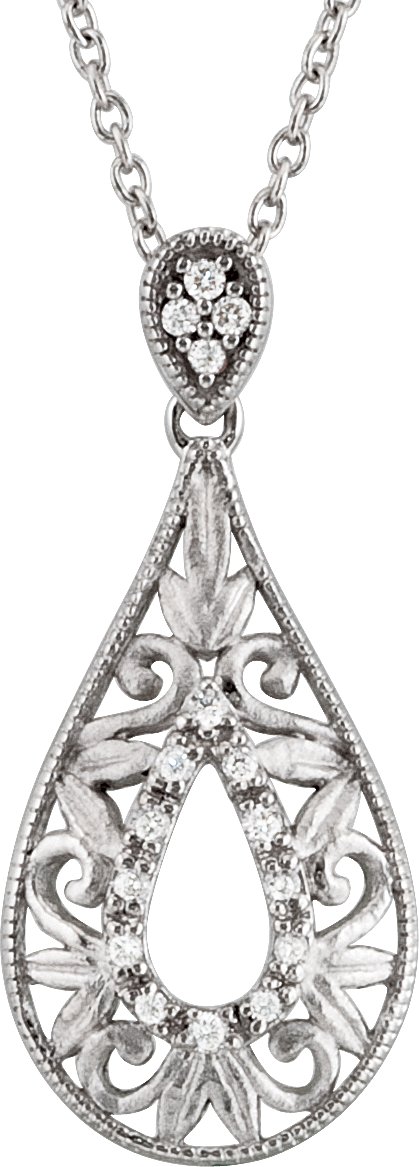 Sterling Silver 1/10 CTW Natural Diamond Filigree 18″ Necklace – 69484