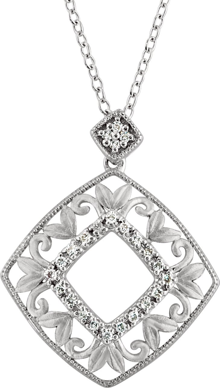 Sterling Silver 1/6 CTW Natural Diamond Filigree 18″ Necklace – 69488