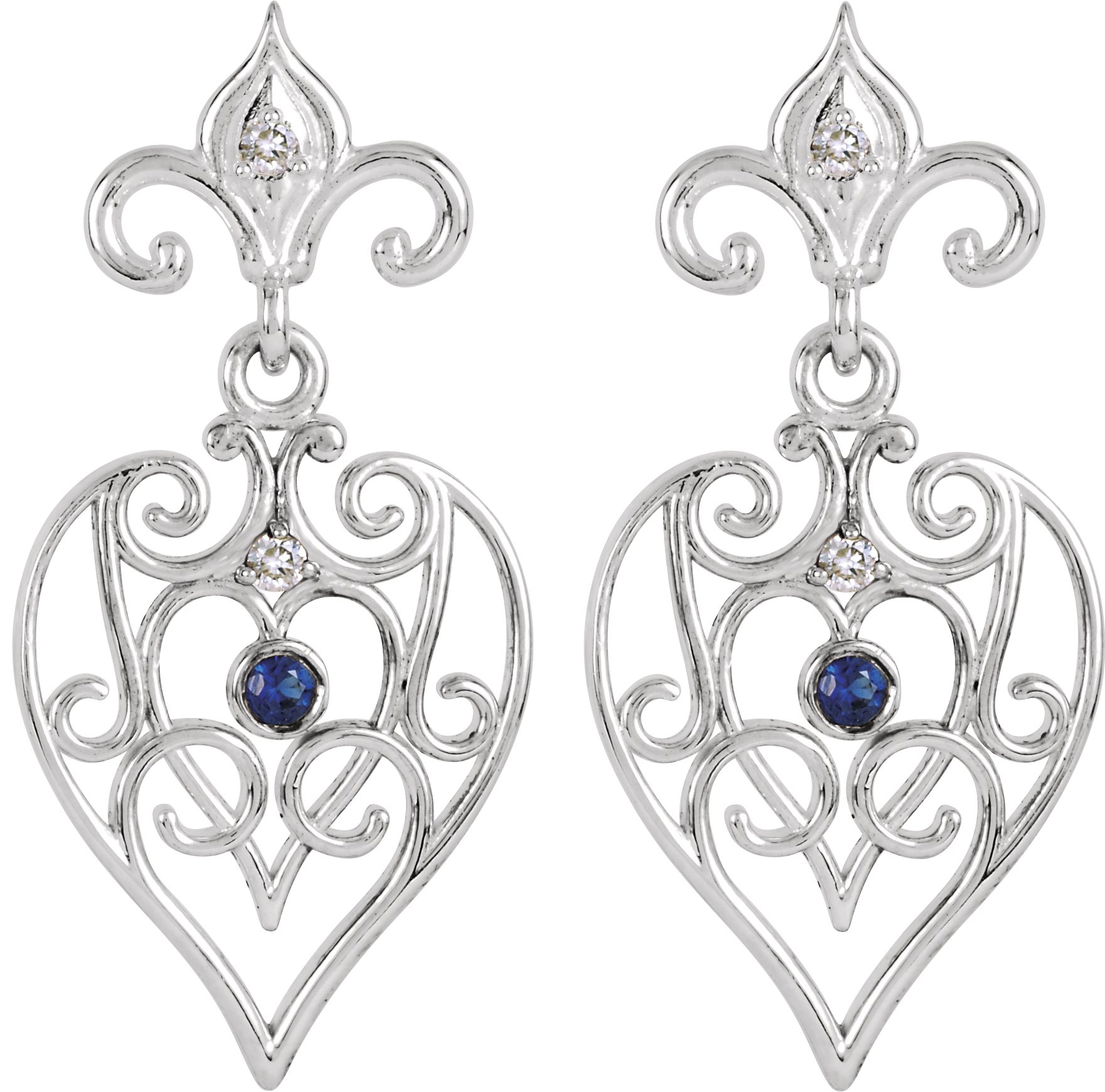 Sterling Silver & 14K White Natural Blue Sapphire & .04 CTW Natural Diamond Earrings – 85596