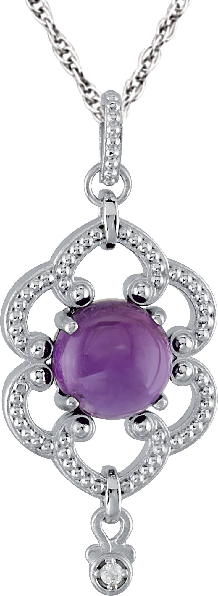 Sterling Silver Natural Amethyst & .015 CT Diamond Granulated 18″ Necklace – 85339