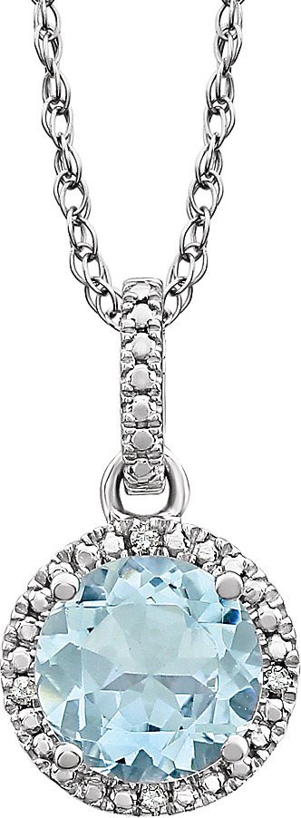 Sterling Silver Natural Aquamarine & .01 CTW Natural Diamond 18″ Necklace – 652051