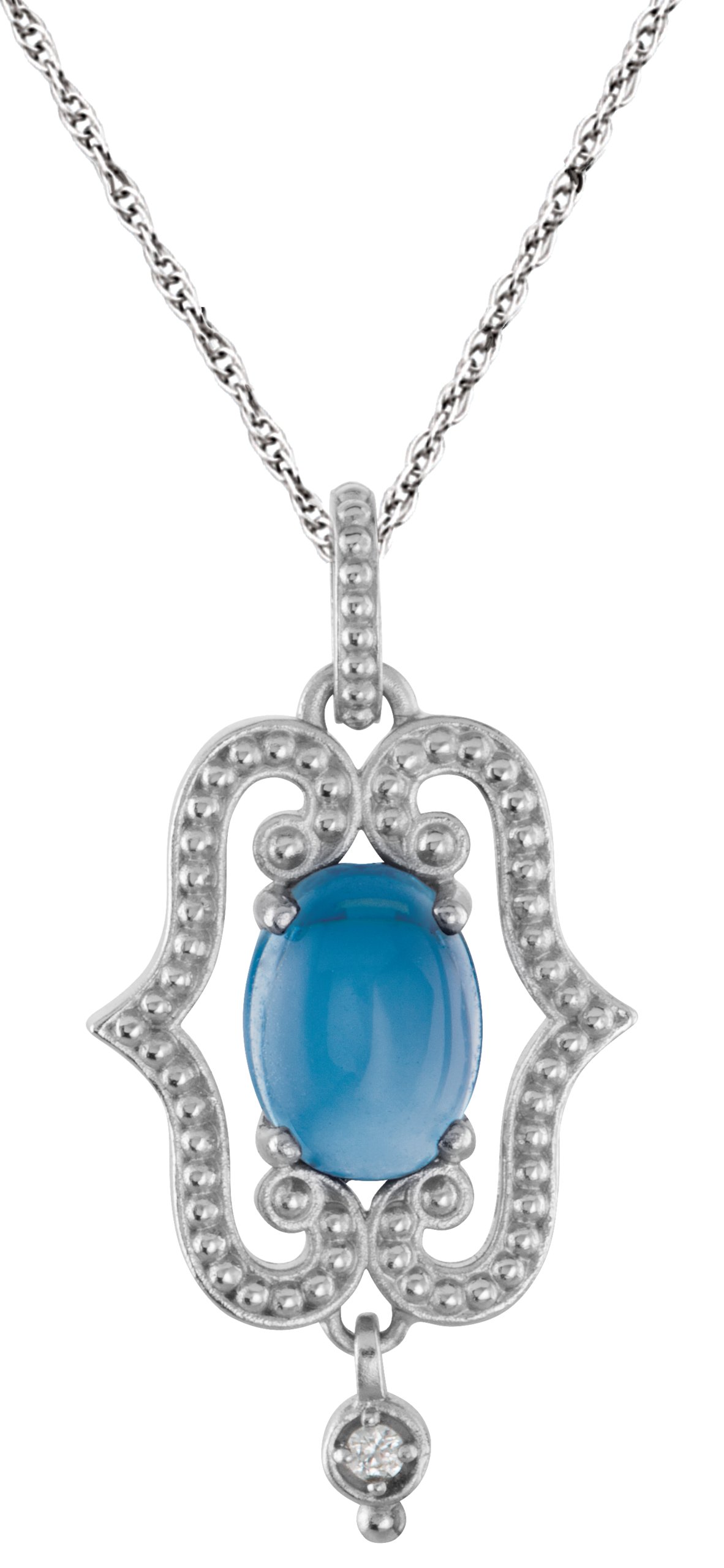 Sterling Silver Natural Swiss Blue Topaz & .02 CT Natural Diamond 18″ Necklace – 85347
