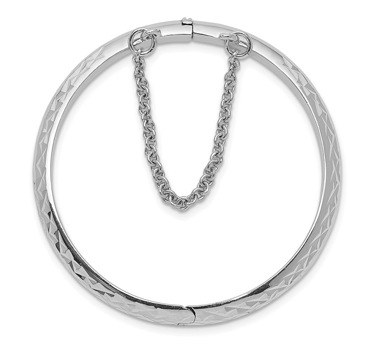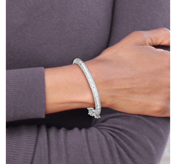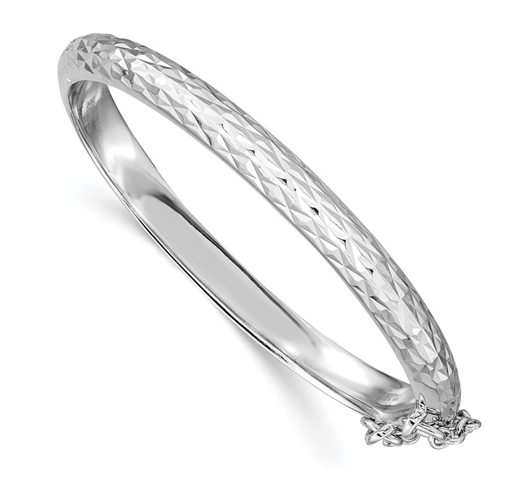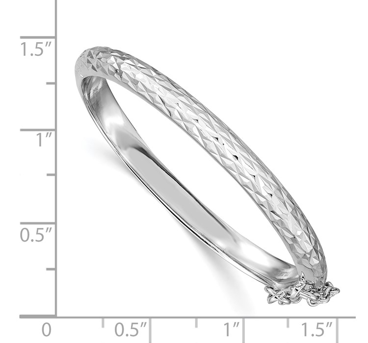 Sterling Silver Rhodium-plated Polished and Diamond-cut 4.5mm with Safety Clasp Hinged Children’s Bangle